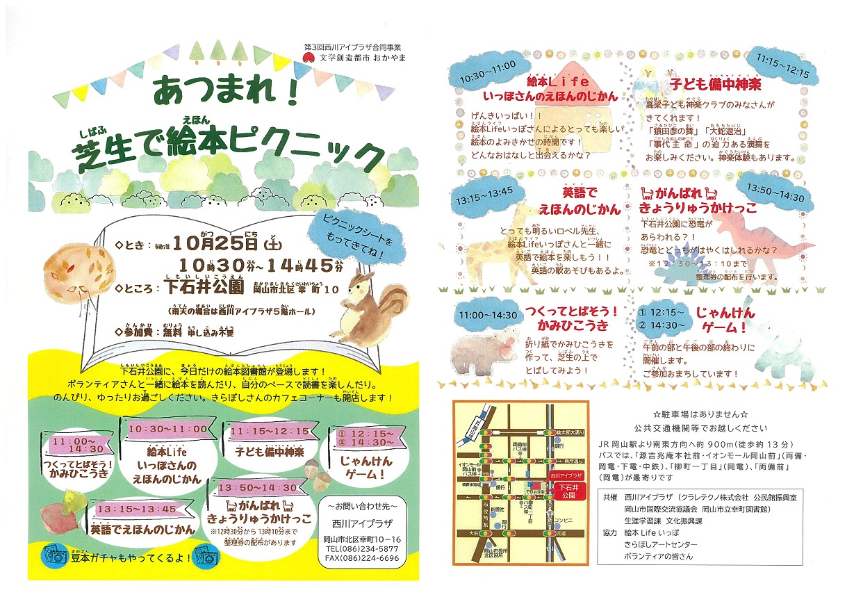 下石井公園の天然芝にシートを広げて、絵本を楽しみませんか。