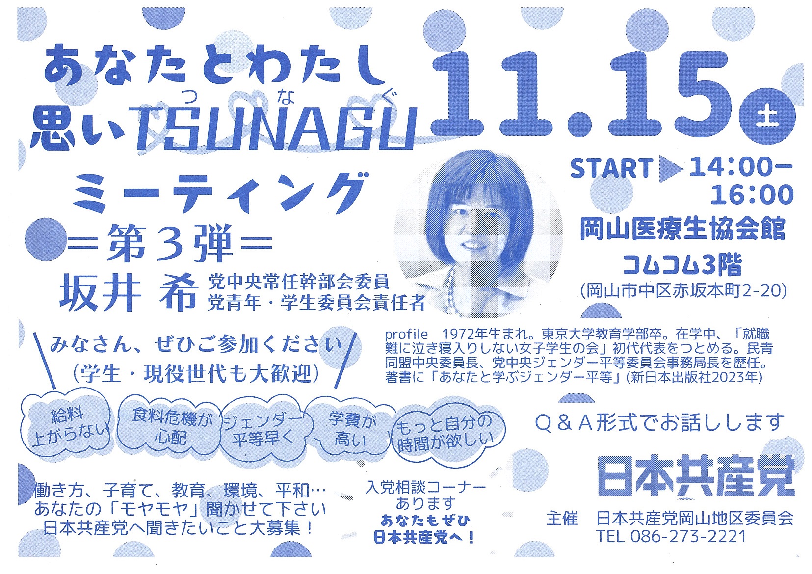 ◎主催・問い合わせ 日本共産党岡山地区委員会(電話086-273-2221)