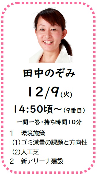 この日の最後となる9番目には、田中のぞみ議員が質問に立ちます。