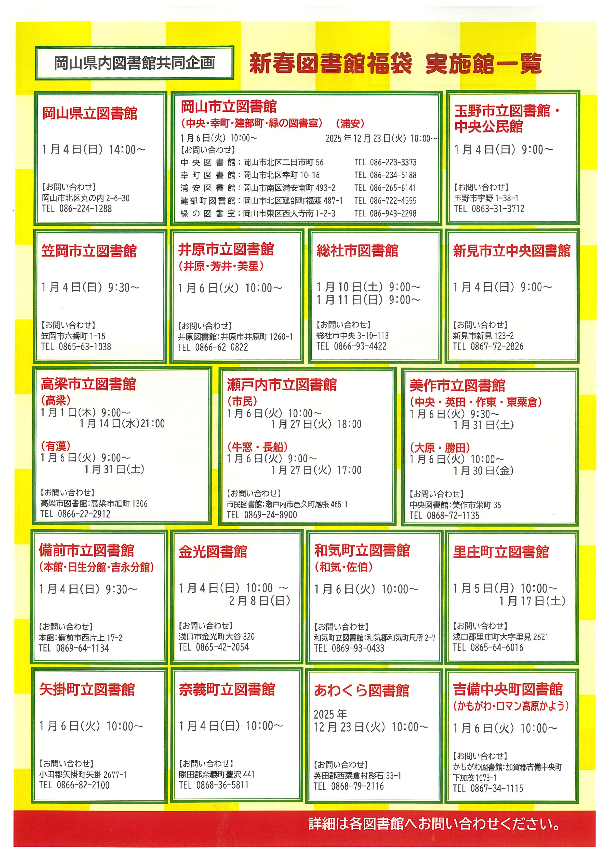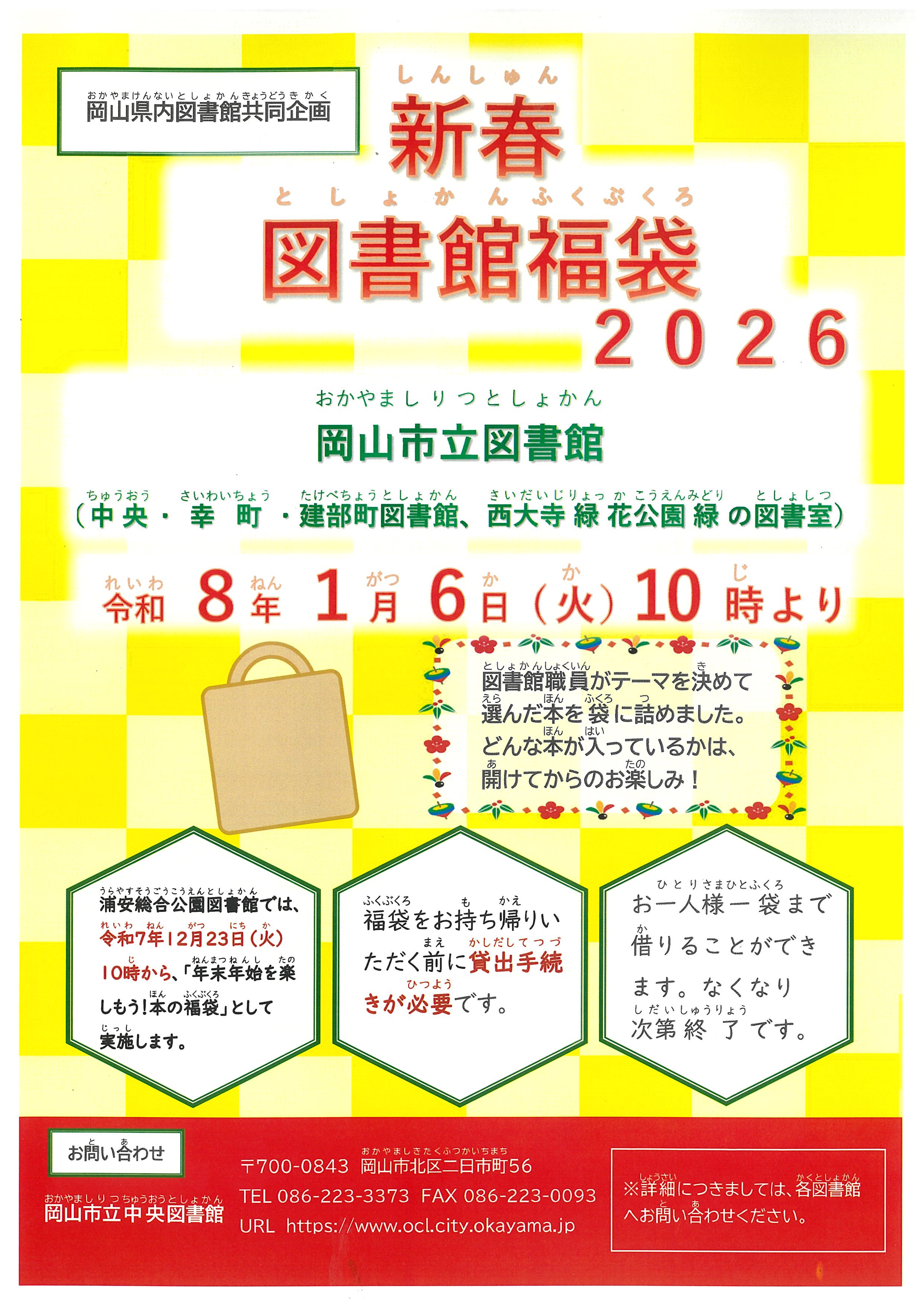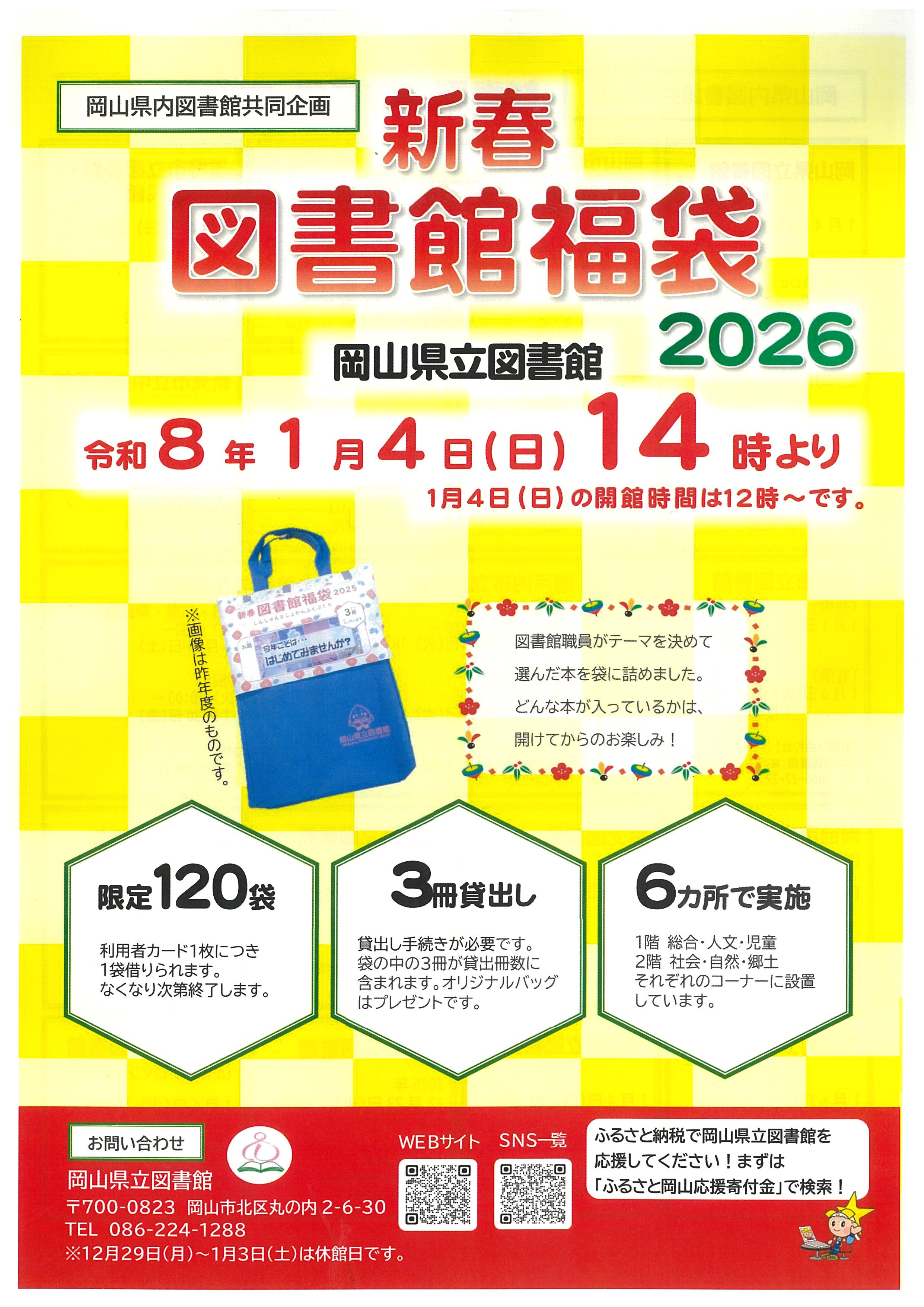 岡山市立の各図書館・図書室や県立図書館をはじめ、県内18市町村にある公共図書館が連携して、新春にお届けする面白企画です。
