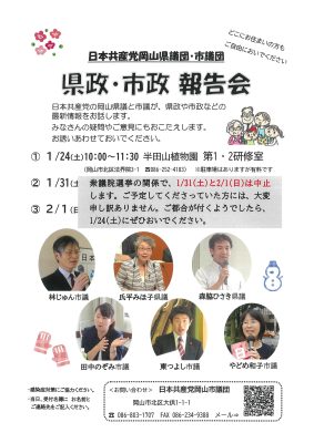 日本共産党岡山県議団と市議団は、「県政市政報告会」を定例議会後に開いています。