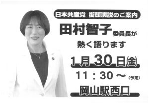 また、田村智子日本共産党委員長(衆院議員)が、岡山に来ることが決まりました。