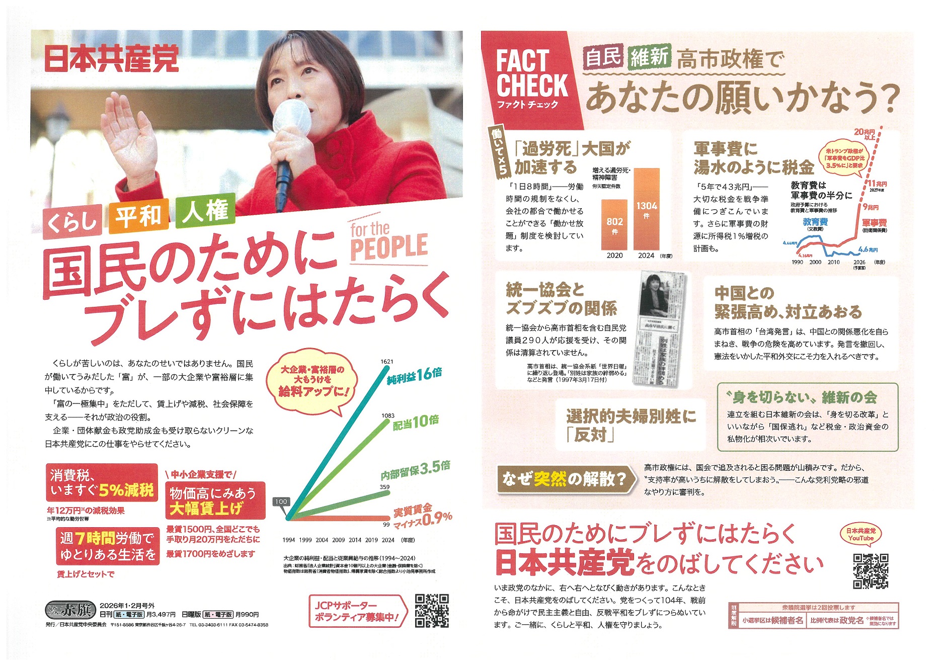 「くらし、平和、人権 国民のためにブレずにはたらく」と大きく銘打ったチラシを出しています。
