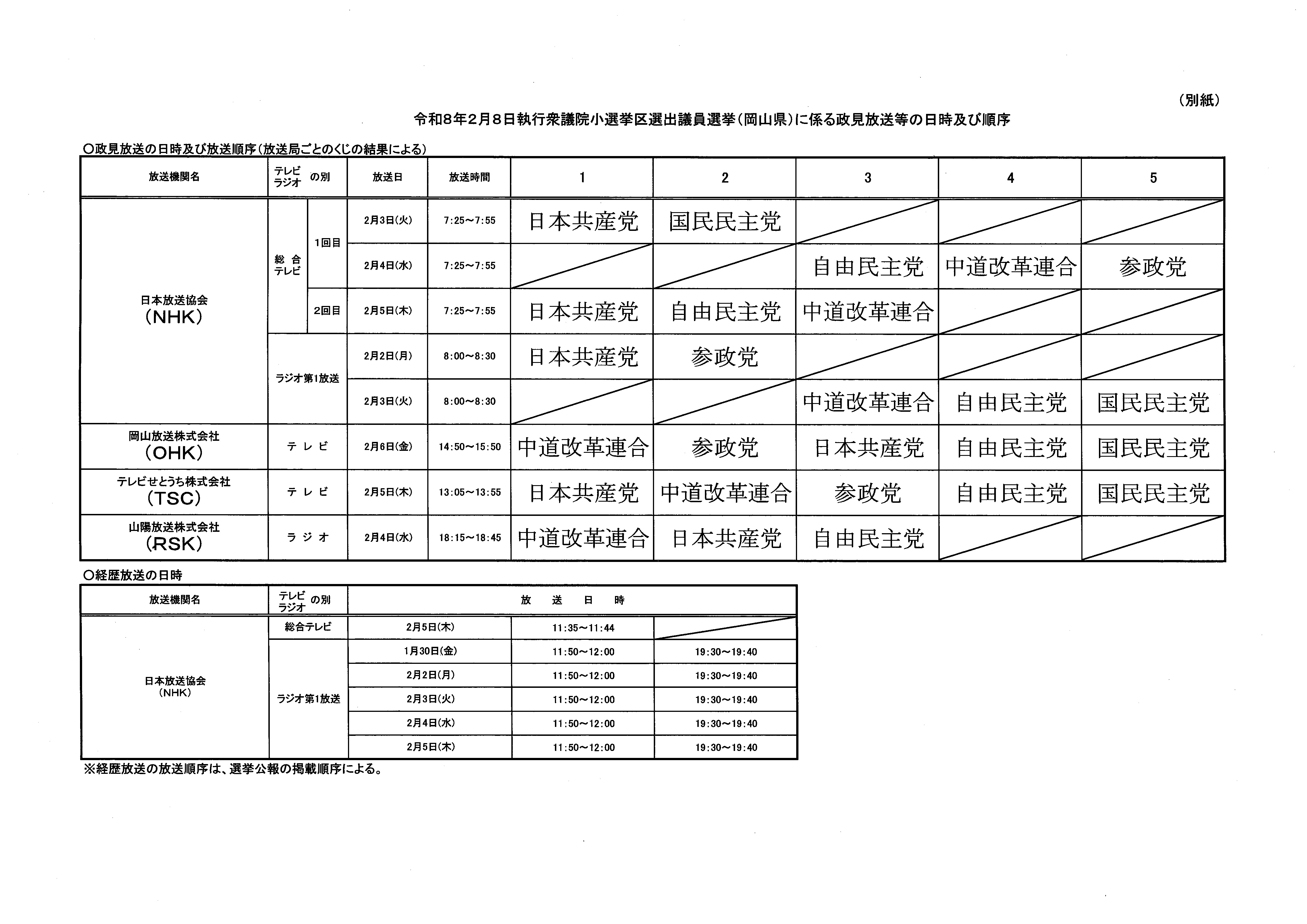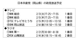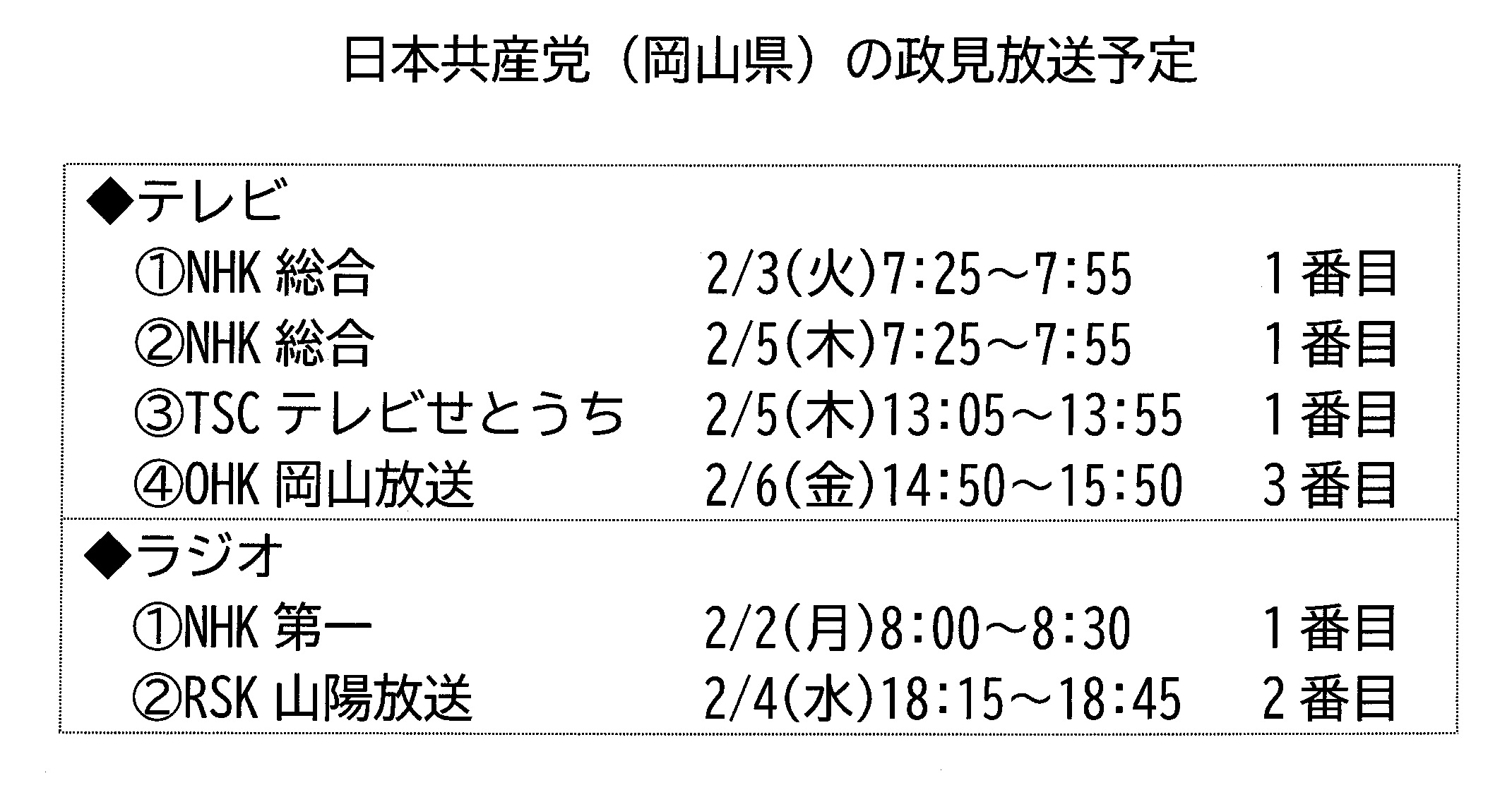 今行われている衆議院総選挙の岡山県内向け「政見放送」の日程が決まりました。