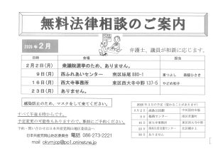日本共産党岡山地区委員会では、生活の困りごとに弁護士と岡山県議・岡山市議などが相談に応じる「無料法律相談」を行っています。